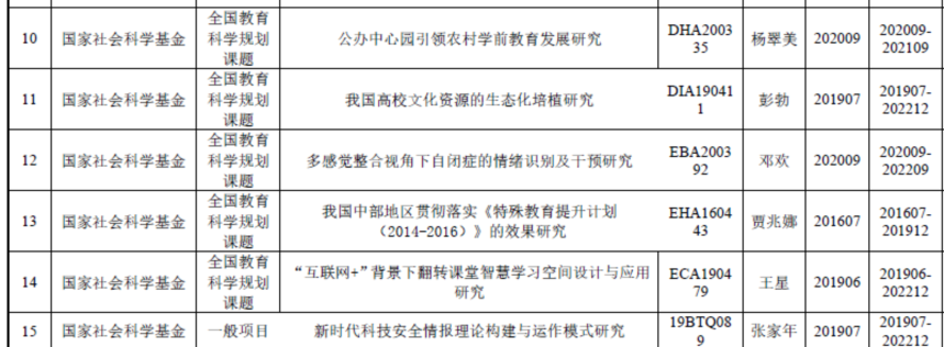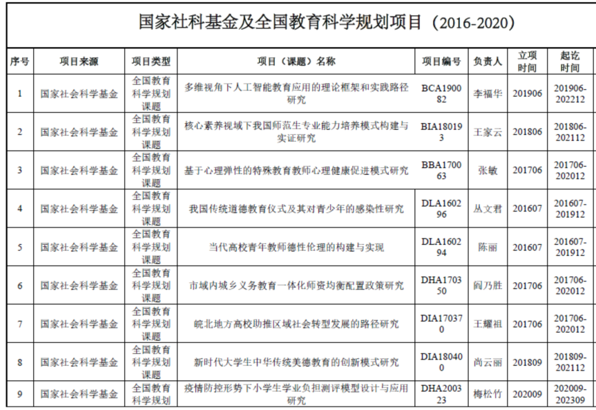 国家社科基金及全国教育科学规划项目(2016-2020)