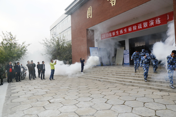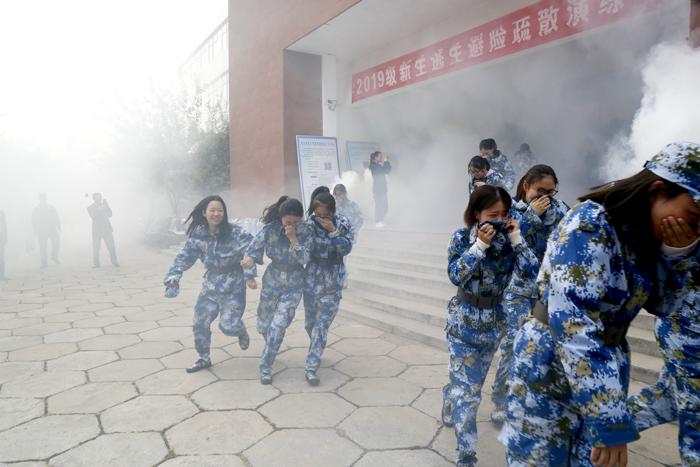 讲座结束后,在军训教官的带领下,2019级新生到学校图书馆完成了一场逃生避险疏散演练。校党委副书记朱德顺到现场指导开展逃生演练。逃生避险疏散演练开始前,消防队员们首先为新生开展教育指导,明确了灭火步骤、逃生方法、疏散路线等具体要求。通过消防演练,不仅使同学们在较短时间内有效掌握了在火场环境下迅速逃生、自救、互救的基本方法,还帮助学生切实提高了抵御和应对紧急突发事件的能力。