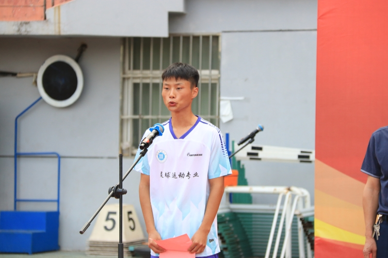 足球运动专业学生孙长灏代表全体同学表态发言。表示一定要努力学习、刻苦训练,不辜负学院对我们的期望。开学典礼后,足球运动专业学生与校代表队进行了一场友谊赛。与会领导、嘉宾及师生共同观看了比赛。